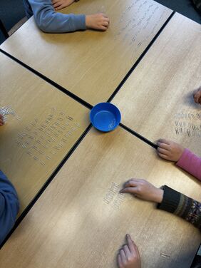 Zur Zahlenraumerweiterung haben wir das Buch „999 Froschgeschwister ziehen um“ in Mathematikunterricht gelesen. In diesem Buch ziehen Mama und Papa Frosch mit ihren 999 Kindern um. Auf dem Weg zu einem größeren Teich lauern viele Gefahren. Ob alle Froschkinder im neuen Teich auch ankommen werden? In Gruppen haben die Kinder die „Froschkinder“ gezählt und die Zahl notiert. Ob das Ergebnis Papa Frosch beruhigen wird?